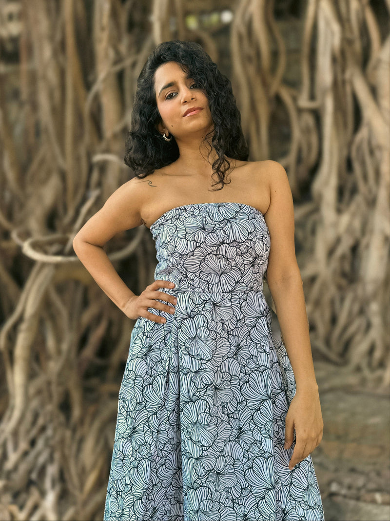Aurora Dress - Floral Printed Strapless Midi Dress