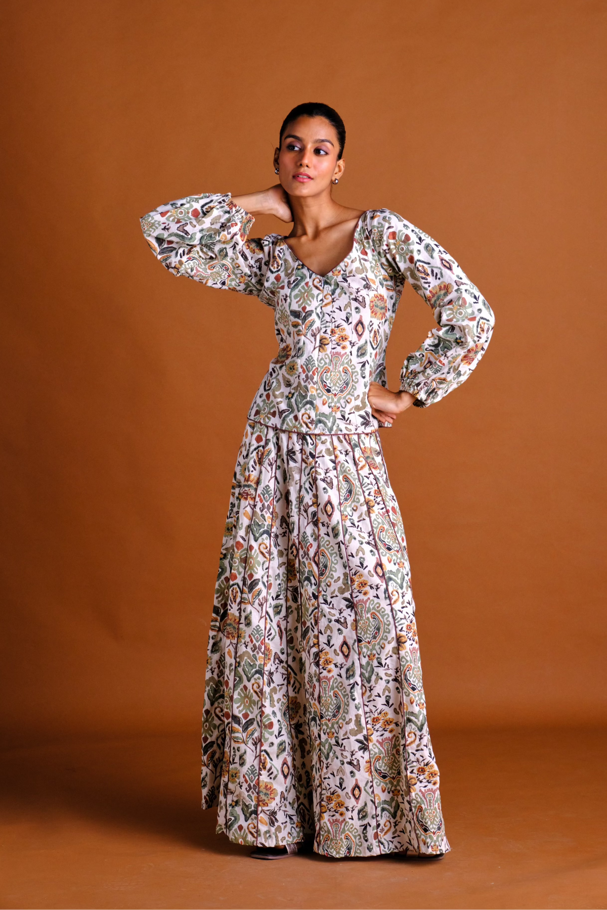 Lianne Set - Red Printed Strapless Top and Flared Pant Set