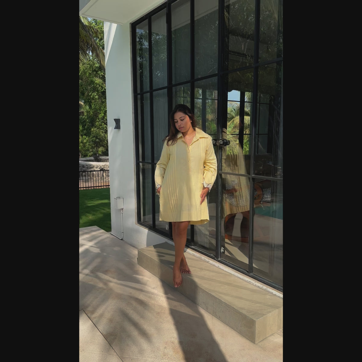 The Isla Linen Shirt Dress is made from a high quality linen fabric. It features hand scalloped detail with lace on the sleeves, pin tucks in the front, high low hem and pearls buttons. Dress it up with strappy wedges or keep it casual by pairing it with a pair of white linen pants for a fun summer look.