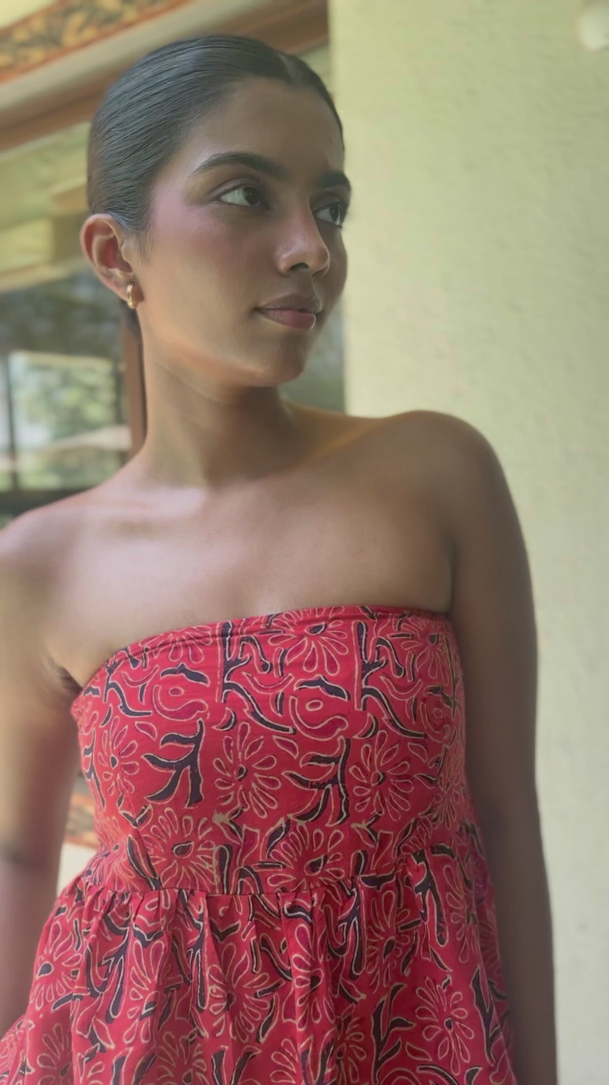 The Lianne Set is made in high quality muslin cotton fabric. It features an off shoulder tube top with an elasticated ruched back and a pair of flared pants with elasticated waist and pockets on each side. The set is lined with premium quality cotton to ensure maximum comfort.